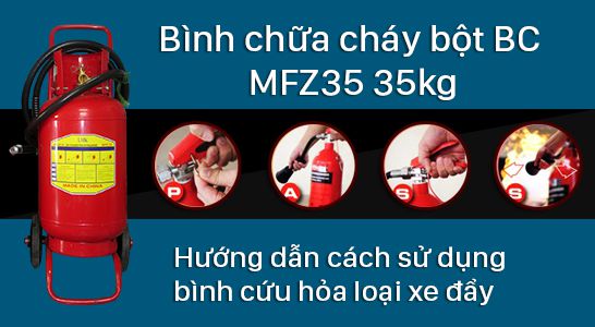 Bình chữa cháy loại xe đẩy đây là loại bình chữa cháy có công suất lớn, dùng để chữa cháy các đám cháy có diện tích khá lớn tùy theo từng loại bình